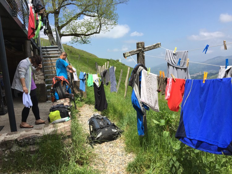 Most pilgrims–myself included–take only 2-3 pairs of everything: t-shirts, socks, underwear, and all quick drying. Laundry becomes a daily ritual.