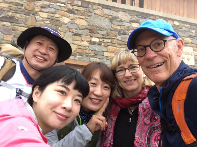Some of my fellow “bunk mates” the next morning just before we hit the Camino. Two Koreans, one Japanese, one German.