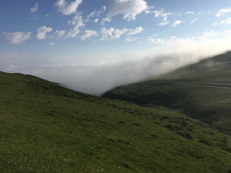 Leaving the next morning in dense fog. Cattle, sheep and horses dot the mountains and they all wear heavy bells, creating a symphony of sounds.