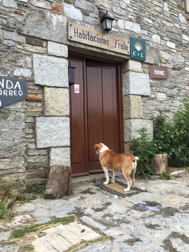 Met this Spanish couple with their black lab–they just started in Sarria, two days ago. He’s the best trained dog-/sticks right with them. Sure makes me miss Buddy. I wonder if he’ll remember me.