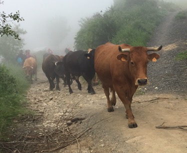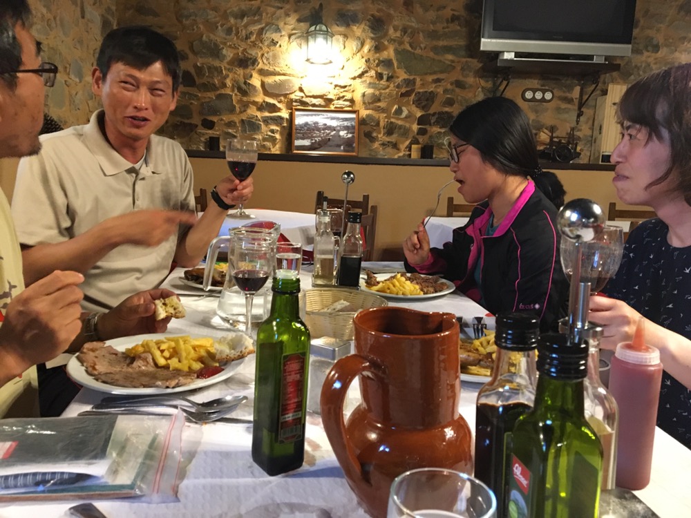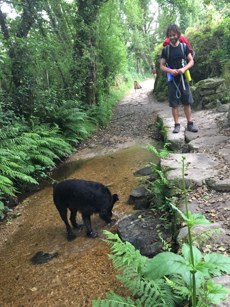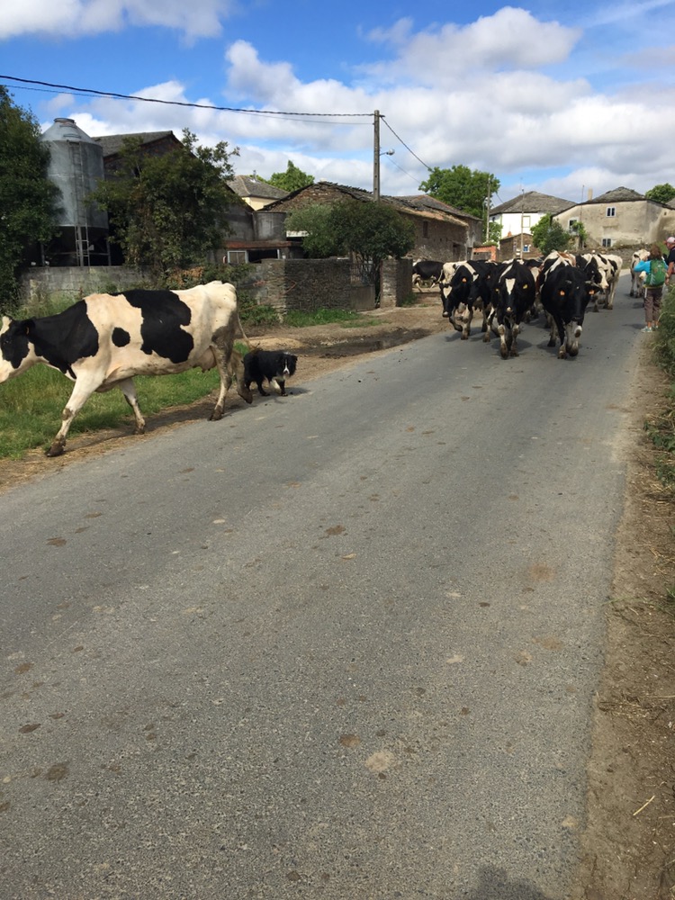 Met this Spanish couple with their black lab–they just started in Sarria, two days ago. He’s the best trained dog-/sticks right with them. Sure makes me miss Buddy. I wonder if he’ll remember me.