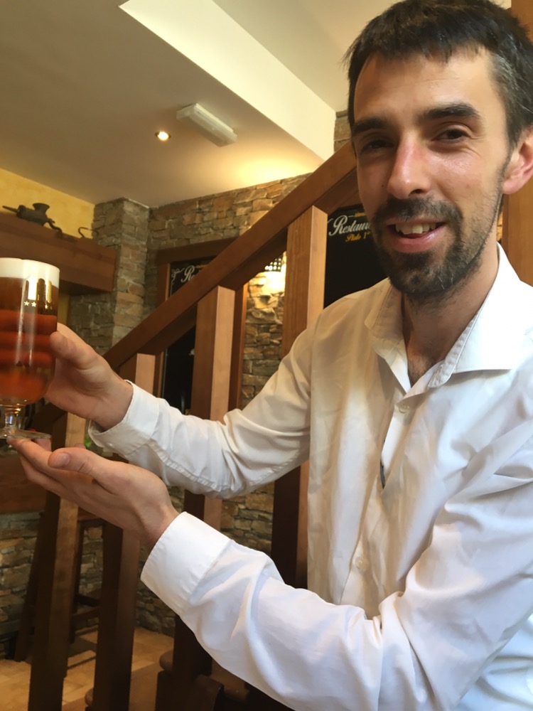 Adrian shows me the finer points of a Cerveza:the foam can only be 1-inch high. What a great guy. I love the people of Gallicia–so warm and outgoing.