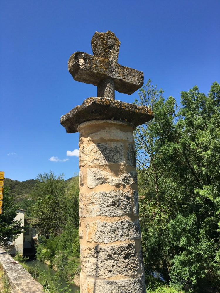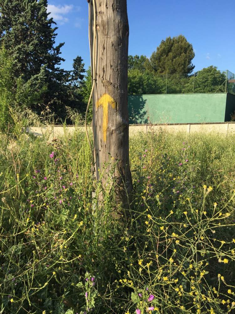This afternoon was like a forced march through the heat and 85-degrees of full, glaring sun. To me it was more difficult than the Pyrenees were….Too many 25-degree steep hills, again.And new blisters to go with those hills.